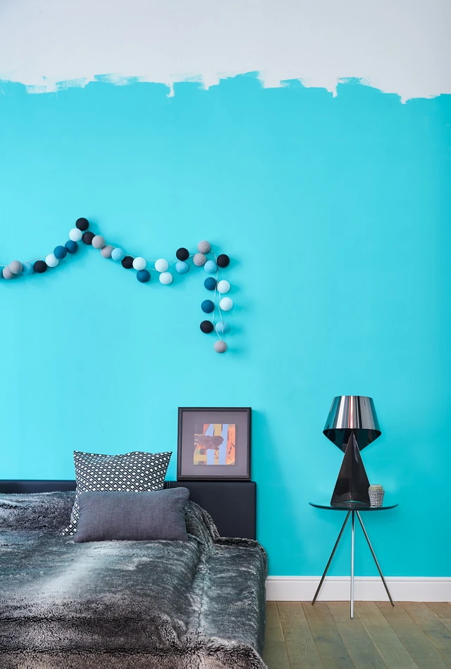 5. A különböző árnyalatú kékek jól illenek egymáshoz. A kék a végtelen tengert juttatja eszünkbe, állítólag ezért is van ránk nyugtató hatással. Tipp a Poli-Farbe Platinum egyrétegű beltéri falfesték választható árnyalataiból: Brazil menta (BM50)
