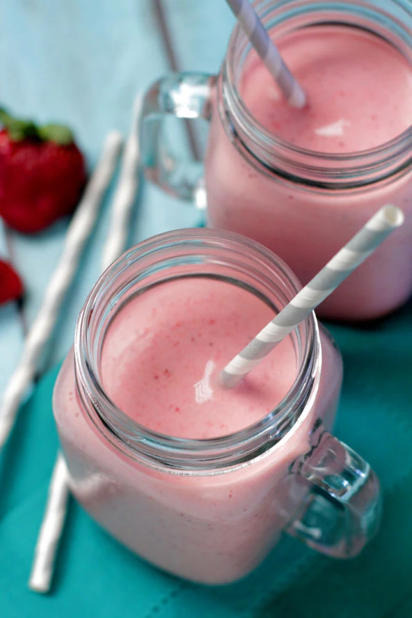 Hozzávalók 8 személyre: 50 dkg eperfagyi, 8 pohár joghurt, 25 dkg eper, fél citrom, tej