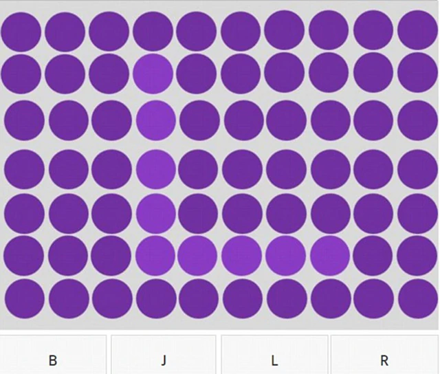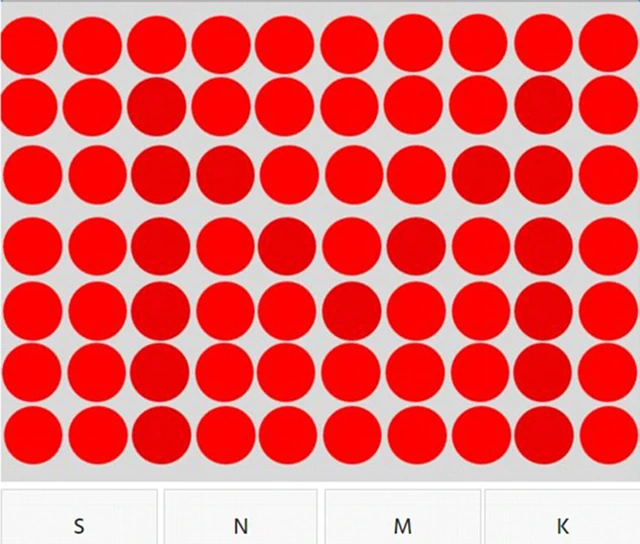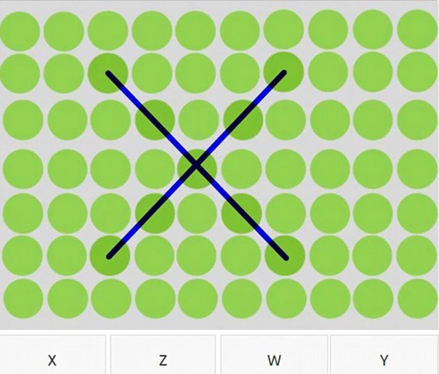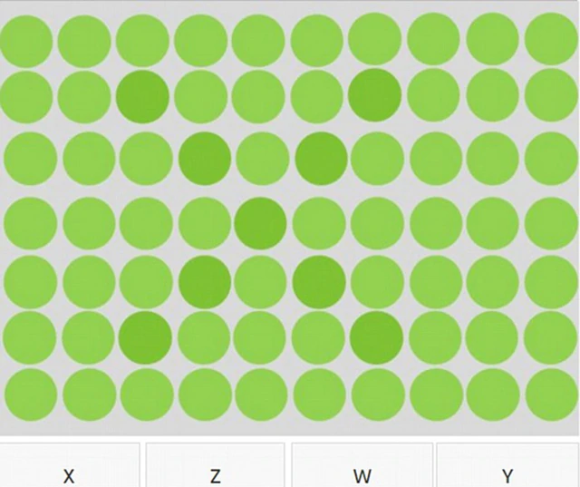 Itt az újabb őrület, egy téglalap alakú mezőben sok-sok azonos színű pötty, persze csak első ránézésre, mert valójában mindegyikben egy betű van elrejtve, amelyeknek a színe egy nagyon-nagyon picit más. Te látod a betűket?