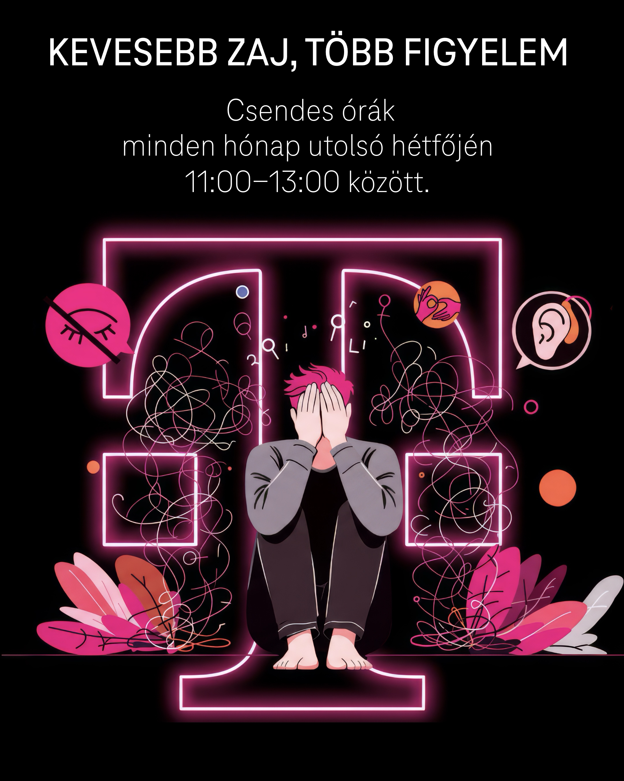 A Magyar Telekom döntése értelmében minden hónap utolsó hétfőjén 11 és 13 óra között úgynevezett csendes órát tartanak az üzletekben. Ennek során tudatosan csökkentik azokat az ingereket, amelyek az autizmussal élő ügyfelek számára különösen zavaróak lehetnek. A digitális kijelzők elsötétülnek, az ügyfélhívó rendszerek hangjelzései halkabbak lesznek, és az általános üzleti zaj is mérséklődik.