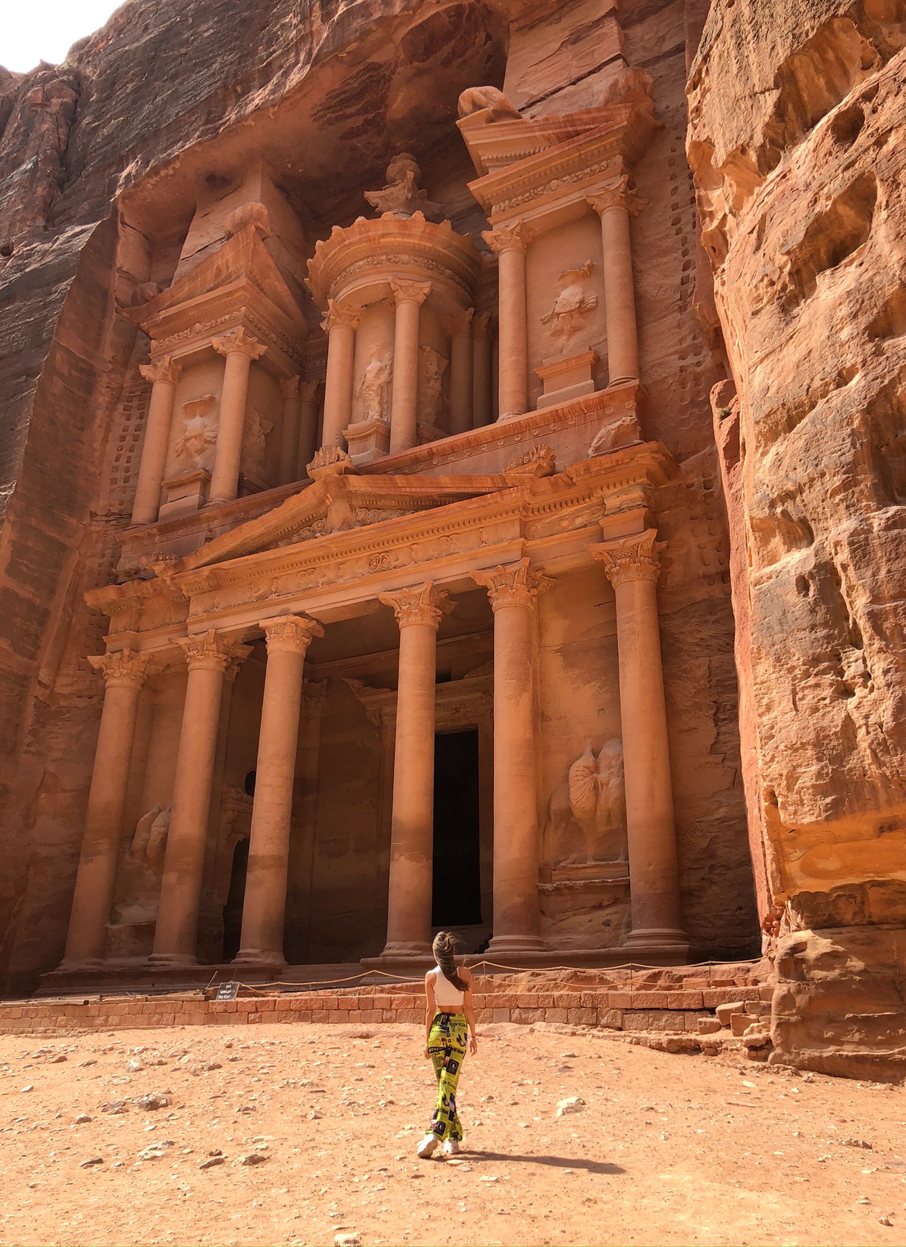 Petra egy romváros, amely nyolcszáz történelmi emlékével az ország egyik kiemelt turistalátványossága. Hogy elkerüljük a nagy tömeget, már a második nap hajnalán elindultunk, de még így is sok turistával találkoztunk. Lehet választani idegenvezetést is, mi a saját tempónkban jártuk végig a túrát, számunkra így kényelmesebb volt. Egy elég fárasztó útvonalon kell végigmenni, de nagyon megéri, mert Petra tényleg gyönyörű, és egészen különleges érzés sétálni a többezer éves romok között. A város már csak azért is érdekes, máig nem lehet pontosan tudni, hogyan és milyen eszközökkel építették a hatalmas, kőbe vésett templomokat.