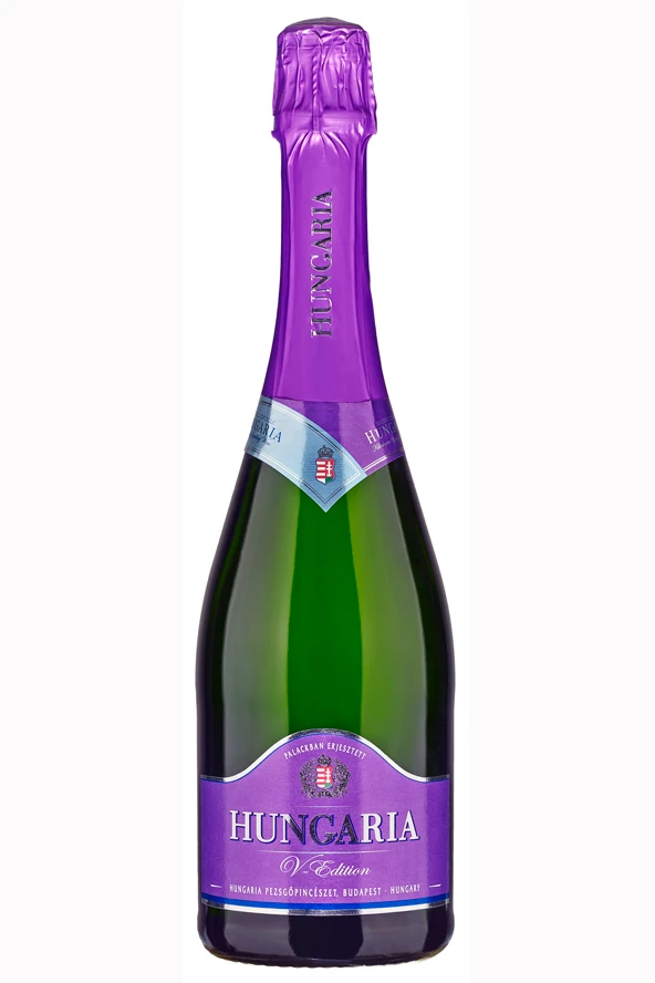 Régóta vágysz egy olyan pezsgőre, amely krémességével és felvillanyozó gyümölcsös ízélményével egyszerre tud kényeztetni? Próbáld ki a Hungaria ötödik, limitált szériás különlegességét, a Hungaria V-Edition-t, amely könnyedségével segít elmerülni az őszibarack és a fehér húsú gyümölcsök varázslatos ízvilágában. Illatát, felejthetetlen aromáját és komplex zamatait a francia eredetű Viognier szőlőfajtának és 10 hónapnyi palackos erjesztésnek és érlelésnek köszönheti. Lendületesség, légiesség és harmónia, ez a Hungaria V-Edition. A valódi exkluzív élményért extravagáns lila köntösbe öltöztetettük a palackokat és mindössze 10 000 darabot hoztunk belőle forgalomba.