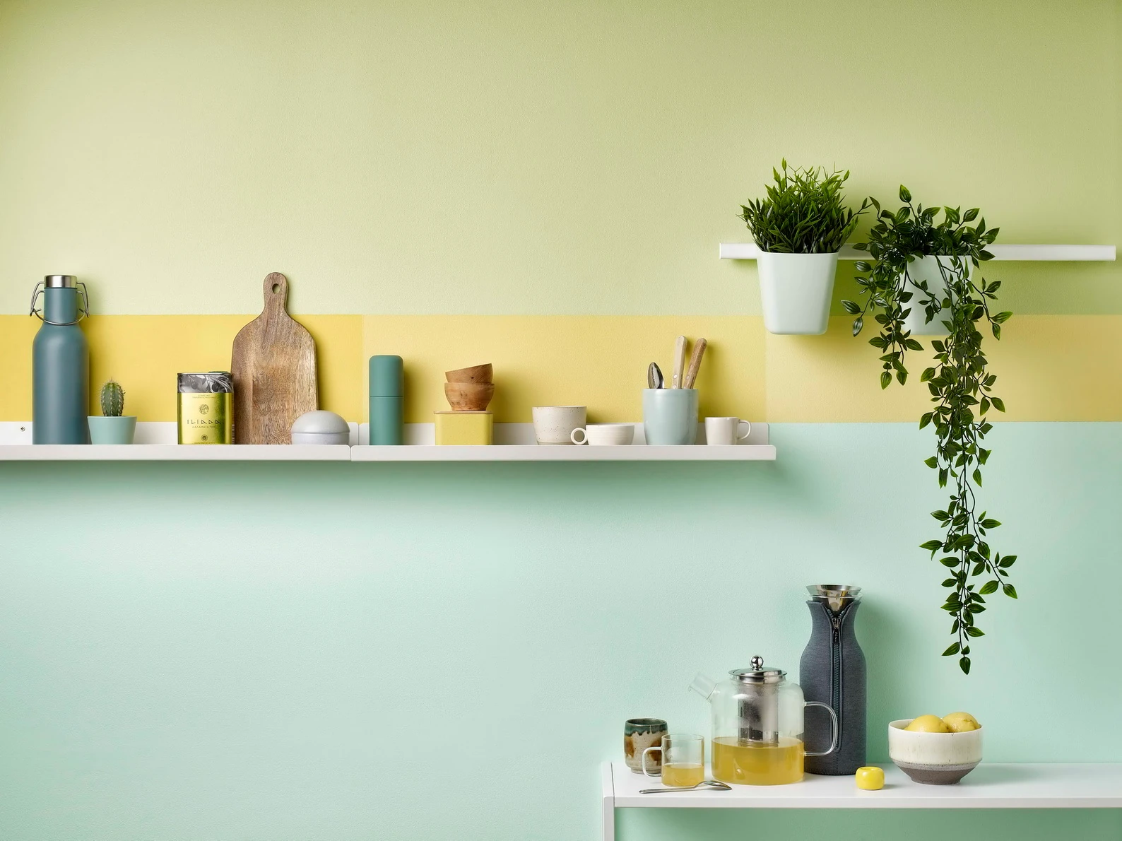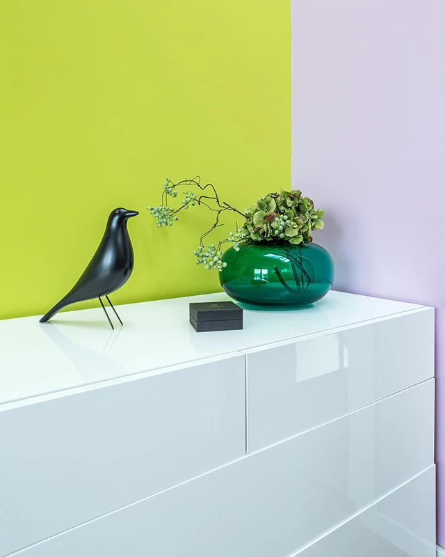 Tipp: a Poli-Farbe Platinum matt latex lime L25 és zöld hortenzia Z30, valamint a Poli-Farbe Platinum nárcisz N60 árnyalata.
