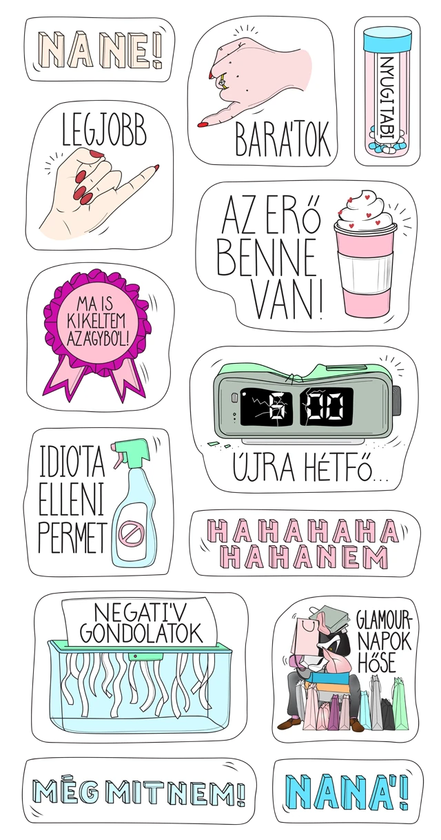 A stickerek között a mindennapos szituációkhoz illő vagány üzeneteket trendi grafikák egészítik ki, a célcsoport kedvenc színeiben. A "Legjobb barátok", a "Nyugitabi" és a "Ma is kikeltem az ágyból!" matricák lettek az első számú közönségkedvencek.