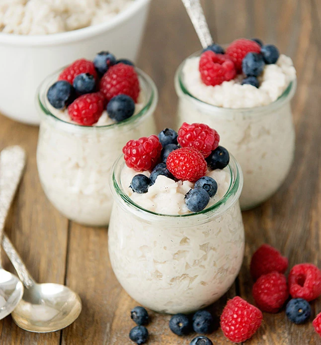 Tejberizs kókusszal és bogyós gyümölcsökkel