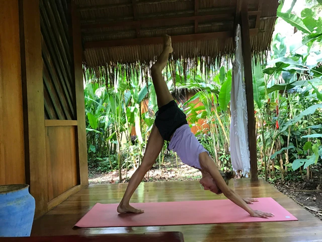 Amikor csak tehetem a természetben gyakorlok. Inspirál a körülöttem lévő környezet és iyenkor tapasztalatom szerint még több életerőhöz jutok. Felemelő élmény pirkadatkor a napüdvözleteket a Nappal egy ritmusban végezni. Az egyenetlen talaj új kihívást jelent. Érezni kell a földet a lábunk alatt és játékosan módosítva az ászanáinkat (jógagyakorlatok) el kell térnünk a szokásos rutintól.