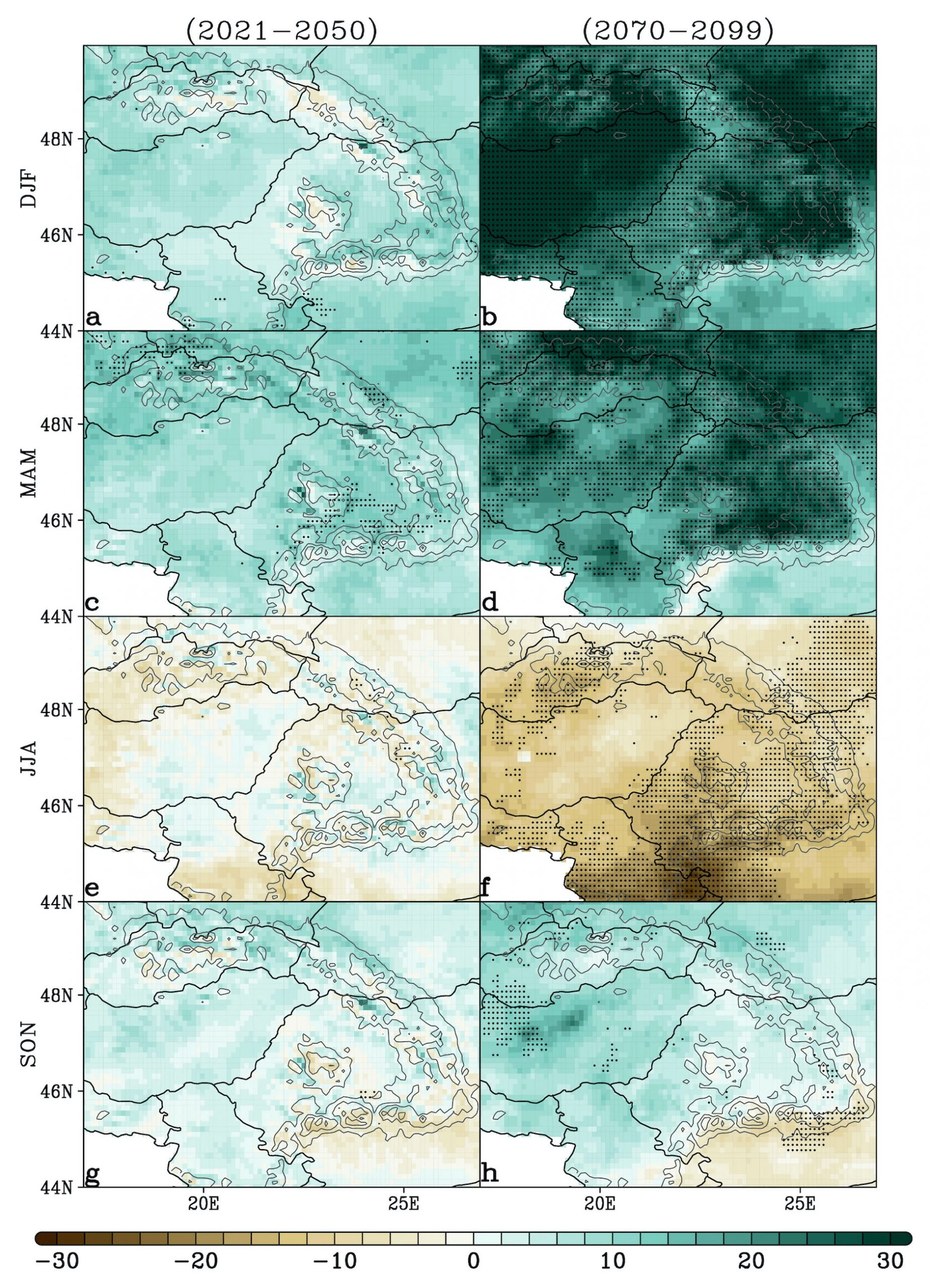 Az elmúlt 120 évben az év során lehulló csapadék mennyisége szignifikáns mértékben nem változott. Ugyanakkor az éven belüli eloszlása igen szélsőségesen is alakulhat: 2020-ban például a június és az október nagyon csapadékos, míg az április és a november aszályos, csapadékszegény volt. Az éghajlati modell-számítások szerint az elkövetkező évtizedekben a csapadék éven belüli eloszlása módosulni fog: a nyár egyre szárazodik, a tél pedig egyre nedvesebbé válik. Ez a mezőgazdasági termelés szempontjából különösen kritikus lehet, hiszen éppen a vegetációs időszak alatt lenne szüksége több nedvességre a növényeknek.