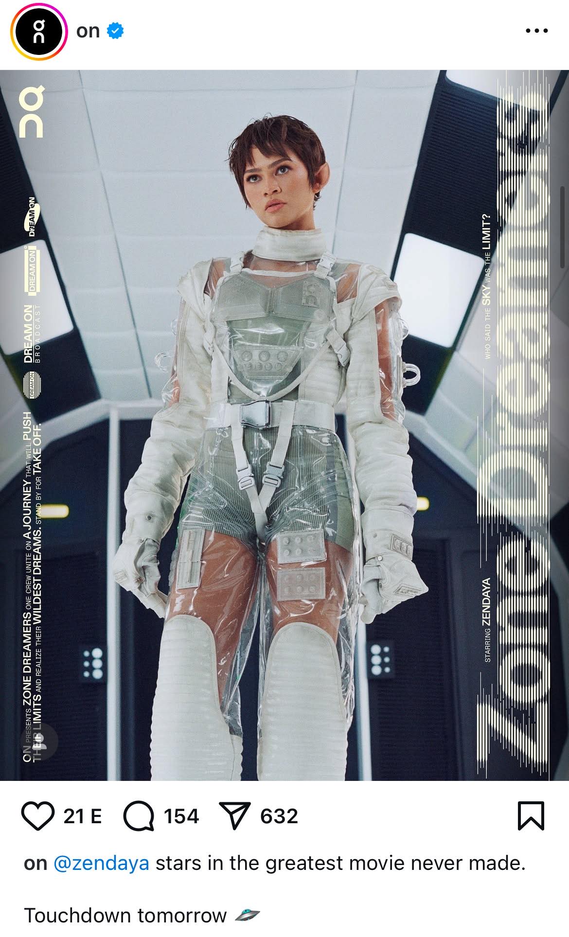 A szpot az On két új termékére helyezi a hangsúlyt, a Studio Knit Bodysuitot és a Cloudzone tornacipőt villantja meg a nézők szeme előtt. Ezek a darabok a márka 2025-ös tavaszi kollekciójának részei, és már elérhetők a vásárlók számára. Zendaya a Women's Wear Daily-nek elmondta, hogy nagy öröm volt számára a kampány létrehozása, különösképpen a rövidfilm forgatása, ami hivatásánál fogva cseppet sem áll távol tőle. „Imádtam az On-nal együtt dolgozni, hogy valami ennyire kreatív és váratlan dolgot hívjunk életre.”