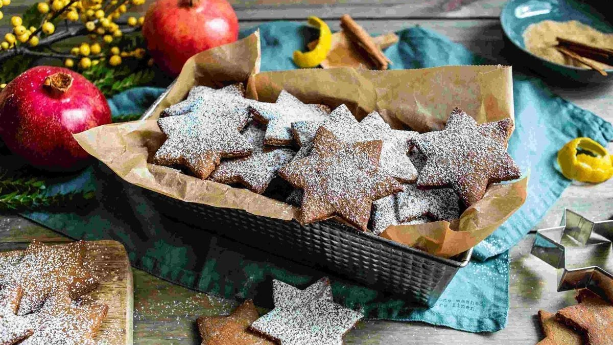 4. Melegítsük elő a sütőt 180 °C-ra. Béleljünk ki egy tepsit sütőpapírral. Lisztezett felületen nyújtsuk ki a tésztát, vágjunk ki csillagokat, és helyezzük a sütőlemezre. Süssük a forró sütőben nagyjából 15 percig, majd óvatosan vegyük ki a tepsiből és hagyjuk kihűlni a rácson. Porcukorral megszórva tálaljuk.