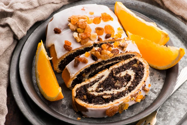 Aszalt gyümölcsös mákos bejgli