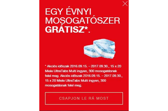 * Akciós időszak 2016.09.15. – 2017.09.30., 15 x 20 Miele UltraTabs Multi ingyen, 300 mosogatásnak felel meg.