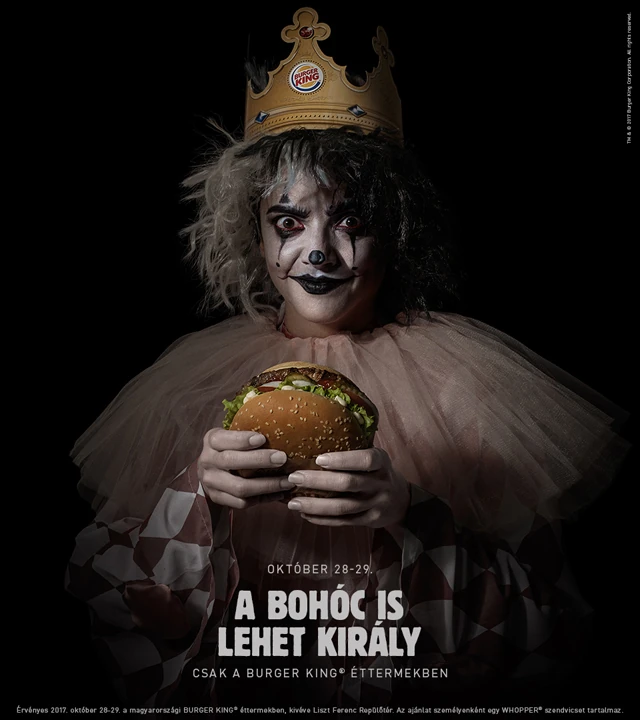 A Burger King pedig olyannyira imádja a bohócőrületet, hogy október 28-29-én ingyen Whopper szendvicset kapnak azok a vendégek, akik félelmetes bohócnak öltözve térnek be az éttermeikbe. A jelmezes látogatók két napon át minden étteremben számíthatnak a királyi bánásmódra.