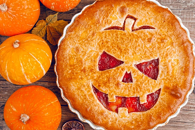 Gyúrd össze a tészta hozzávalóit, majd tedd harminc percre a hűtőbe. Hámozd meg a szilvát, magozd ki, keverd össze a többi hozzávalóval. Amikor letelt a tészta pihenési ideje nyújtsd ki a háromnegyedét egy lisztezett deszkán, helyezd egy piteformába. A maradék tésztát is nyújtsd ki, vágj kör formát és tedd félre. Közben rakd a piteformába a tölteléket. Formálj egy kés segítségevel a körbe egy tök formát, majd helyezed a pite tetejére. Süsd 180 fokon 25 perc alatt készre.