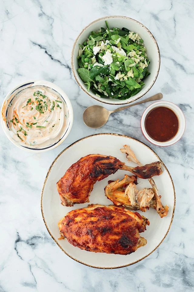 Könnyű és isteni finom: Csilis-pestós sültcsirke mentás joghurttal