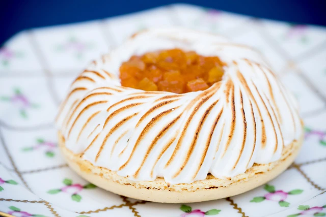 Egy egészen rendhagyó módon készülő macaront képzeltünk el a klasszikus desszert óriásmacaronba csempészett változataként. A desszert alapja ezúttal egyetlen ropogós mandulakalap lett, melyre egy kissé fanyar, citromos, lágy túróban gazdag krémet halmoztunk. A piskóta ízét a vaníliával gazdagított sablé kockák adják, melyre sárgabarack lekvár, aszalt sárgabarack és friss sárgabarack is került. Hogy igazán visszaköszönjön az emlékeinkben élő, klasszikus Rákóczi-túrós íze, egy égetett meringue-et halmoztunk a desszertre, mely féltően öleli körbe az isteni túrókrémet és a barackos szívet.