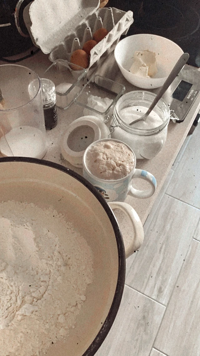 2 dl langyos, cukrozott tej (1,5 teáskanál cukor) >>> ebbe 2 dkg friss élesztő
