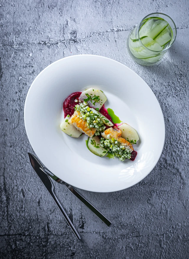 Főételek: Ördöghal (ördöghalfilé, cékla, karalábé, alma), Sertés (párolt sertéscomb, tamarind szósz, káposztasaláta), Kacsa (kacsacomb, meggy, zeller) Patisszon (patisszon, mandula, 64 °C tojás, kapor)