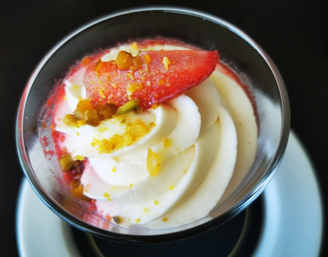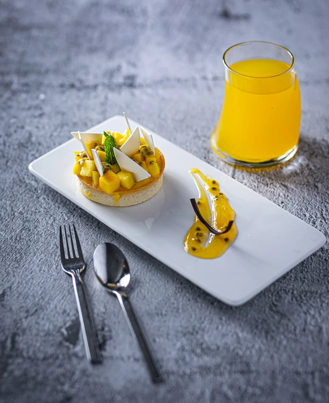 Desszertek: TARTE (fehércsokoládés tarte, mangó), MOUSSE (vaníliás mousse, feketeribizli), ÉCLAIR (csokoládés éclair, málna), MASCARPONE (epres mascarpone hab, menta)