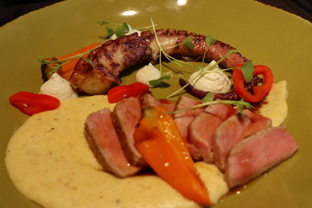 Személyes kedvencem a főételként felszolgált polip volt, amire álmaimban sem gondoltam volna, hogy meg fogom egyszer kóstolni. Utólag nagyon örülök, hogy megtettem, ugyanis nagyon ízletes a húsa, egyáltalán nem emlékeztet a halra, és a fűszerezése annyira zseniális volt, hogy ezáltal egy igazi pikáns különlegesség került az asztalunkra.