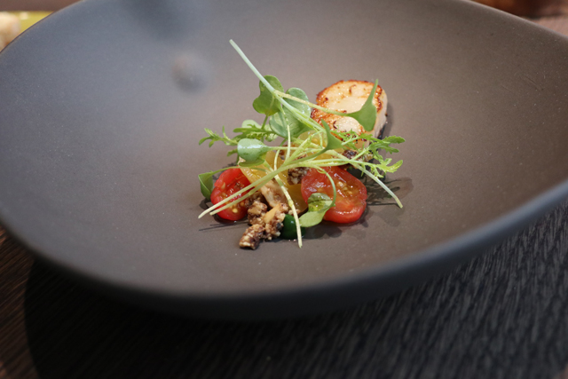 Nem igazán vagyok egy gourmet típus, éppen ezért most úgy jöttem el a Textúrába, hogy akkor itt az idő kipróbálni a legkülönlegesebb fogásokat. Kezdésként Szent Jakab kagylót kóstolhattunk meg, amit a séf ajánlott nekünk. A kagyló sóágyon sült, amivel teljesen elrugaszkodott a hétköznapi ízektől. Bár életemben nem ettem előtte ilyesmit, nagyon pozitív csalódás volt.