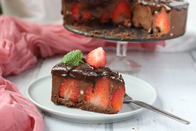 Törd apró darabokra a kekszet, add hozzá az olvasztott vajat, keverd össze. Nyomkodd bele egy tortaformába. Halmozd rá a megmosott epret. A töltelékhez tedd egy tálba a 15 dkg csokoládét, önts rá egy deci forró tejszínt. Verj fel keményre két deci tejszínt és forgasd bele óvatosan a csokis krémbe. Ha kész, öntsd rá az epres, kekszes alapra, tedd hat órára a hűtőbe. A csokimázhoz adj 10 dkg csokoládéhoz egy deci forró tejszínt, keverd össze és öntsd rá a torta tetejére. Tedd harminc percre a hűtőbe.