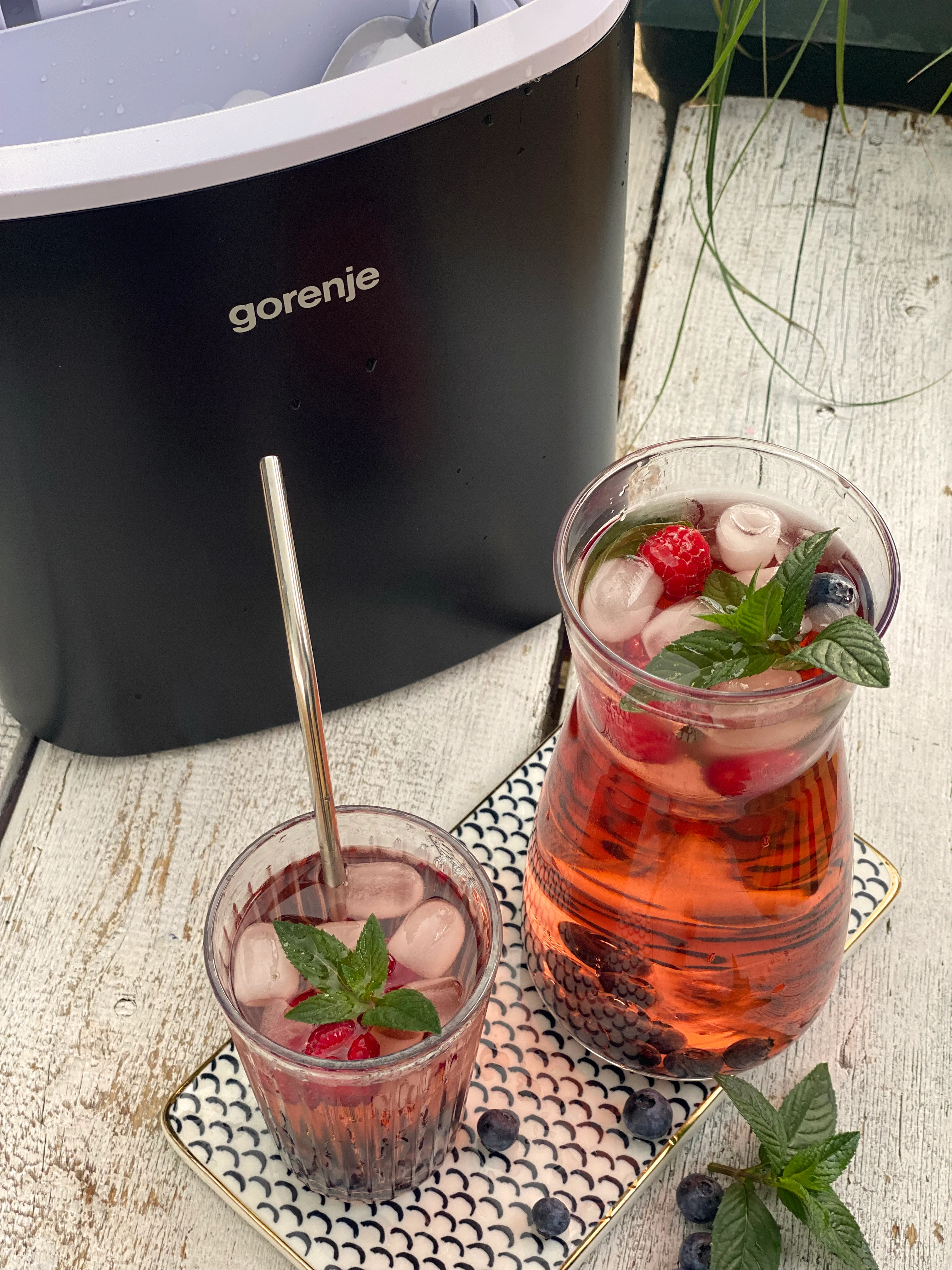 Készíts szörpöt egy kancsóba: facsard bele a citrom levét, a friss mentát és a gyümölcsöket, majd jól keverd össze. Hagyd legalább egy órát a hűtőben állni, közben készíts egy kis jeget a GORENJE jégkészítővel, majd öntsd tetszés szerint poharakba, és töltsd bele a limonádét!