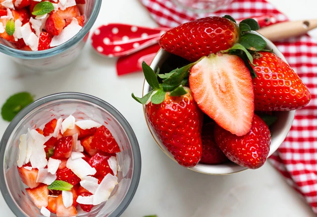 Hozzávalók: 3 deci kókusztej, 10 deka kókuszreszelék, 30 gramm chiamag, tetszés szerint édesítő A rétegezéshez: 20 deka eper, 1 nagy marék kókuszforgács
