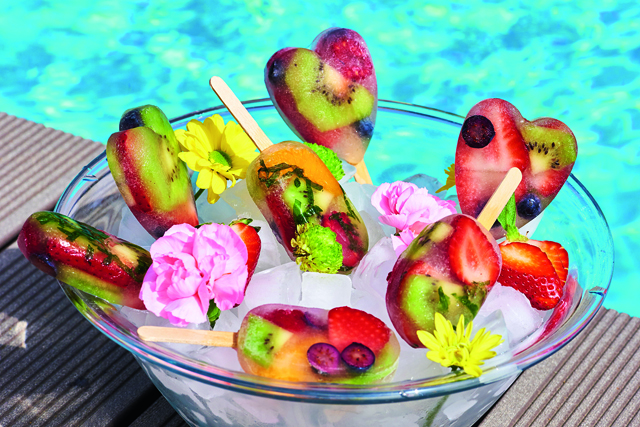 Hozzávalók formától függően és ízlés szerint: dinnyelé, áfonya, kivi, méz, jégkrémkészítő forma, pálcikák