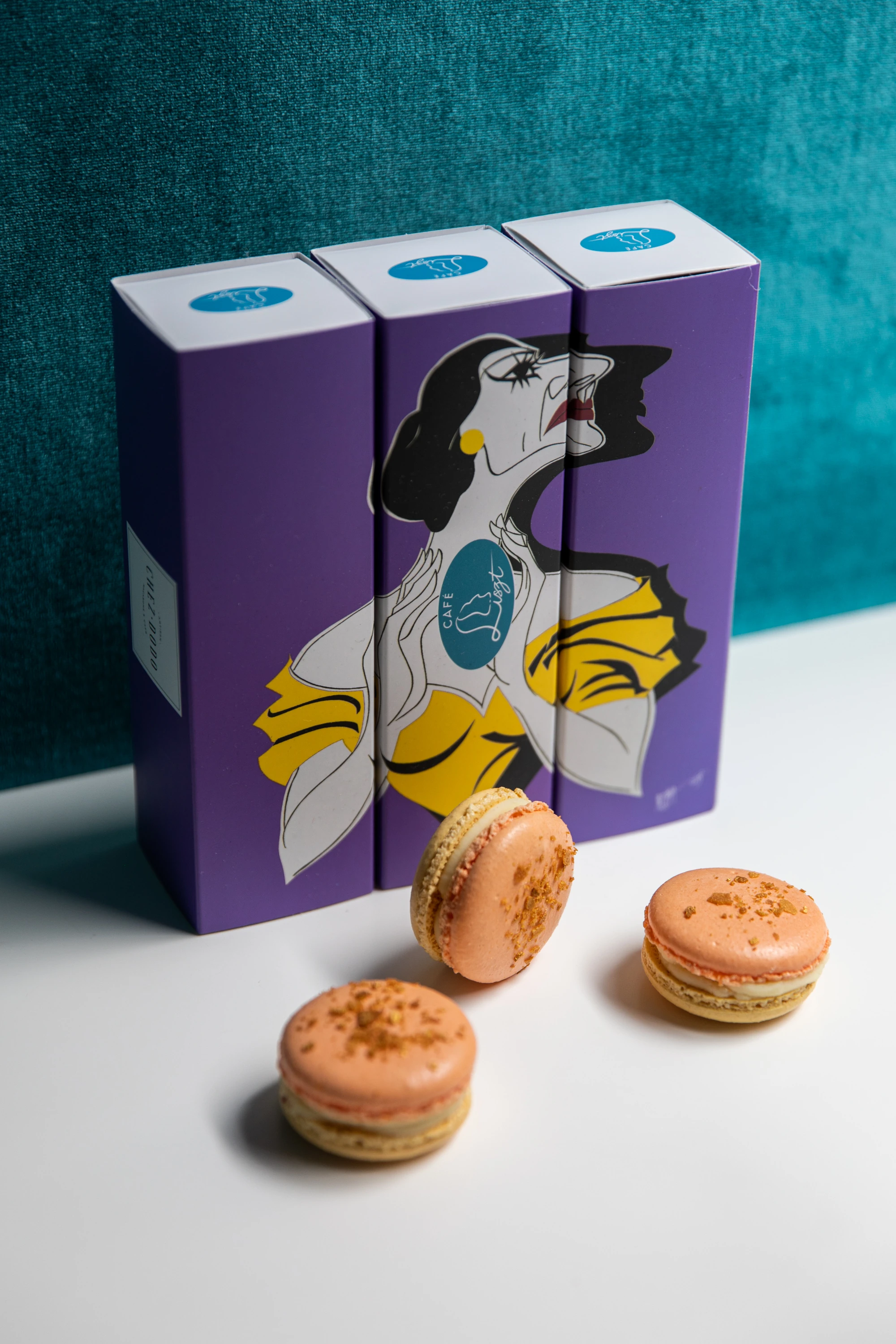 Épp olyan intenzív és különleges karakterű az Amy Winehouse-ról elnevezett macaron, mint, amilyen a hatszoros Grammy-díjas énekesnő volt. A görög hősnők üdesége és merészsége egyszerre jellemezte őt, ezt a kettősséget foglalja magában ez az elképesztően citrusos desszert is. A Kelet-Ázsiában őshonos citrusfélét, a yuzut mandulapasztával és pikáns morrello meggyel párosították. A végeredmény meglepő és zabolázhatatlan, épp mint Amy Winehouse dalai. A macaronokat a Chez Dodo a tőle megszokott igényességgel és kifinomultsággal készítette, a világ legfinomabb alapanyagait használták fel, a roppanós mandulakalapocskák között megbújó krémek alapja a Valrhona csokoládéi, paté d’amande-ja és a Boiron kirobbanó gyümölcspüréi.
