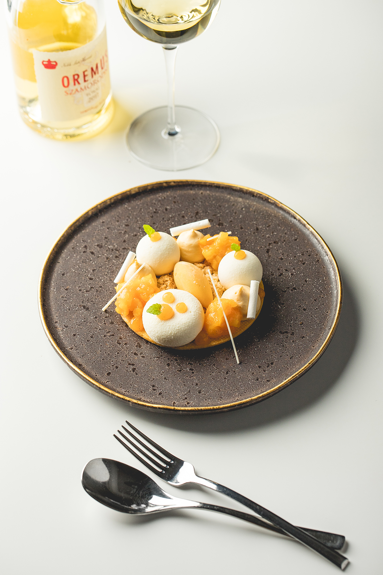 Kirobbanóan gyümölcsös, üdítő nyári íz jellemzi Maria Callast, a pezsgős-barackos macaront. A Bellini pezsgőkoktél ihlette desszerthez a visszafogott vaníliás fehércsokoládés ganache-ba a Kreinbacher Brut pezsgőjét csempészték bele, őszi- és sárgabarack pürével párosították, mindez pedig a buborékokat idéző fehércsokoládés robbanós cukorkáktól válik igazán izgalmassá. Pont olyan kifinomult, mint amilyen a 20. század legnagyobb bel canto opera-énekesnője volt.