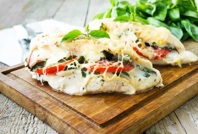 Hozzávalók: fél kiló csirkemellfilé, 2 fej paradicsom, 15 deka mozzarella, só, bors, oregánó,4 evőkanál olívaolaj, pár csepp lime leve, 2 teáskanál mustár, fél marék bazsalikom