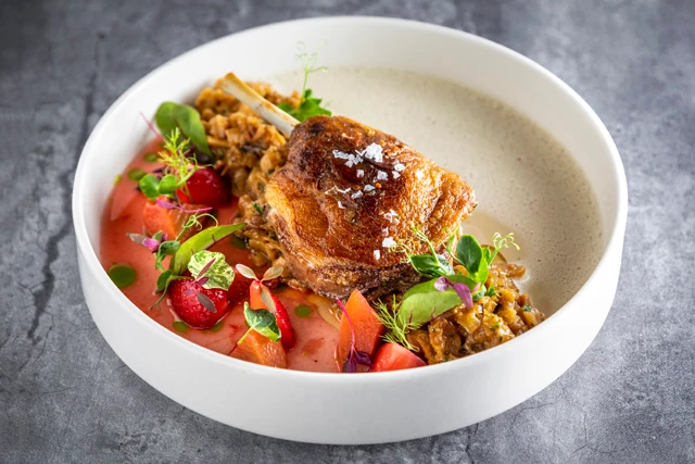Konfitált kacsacomb - reszelt káposztás tészta, kacsamáj velouté: