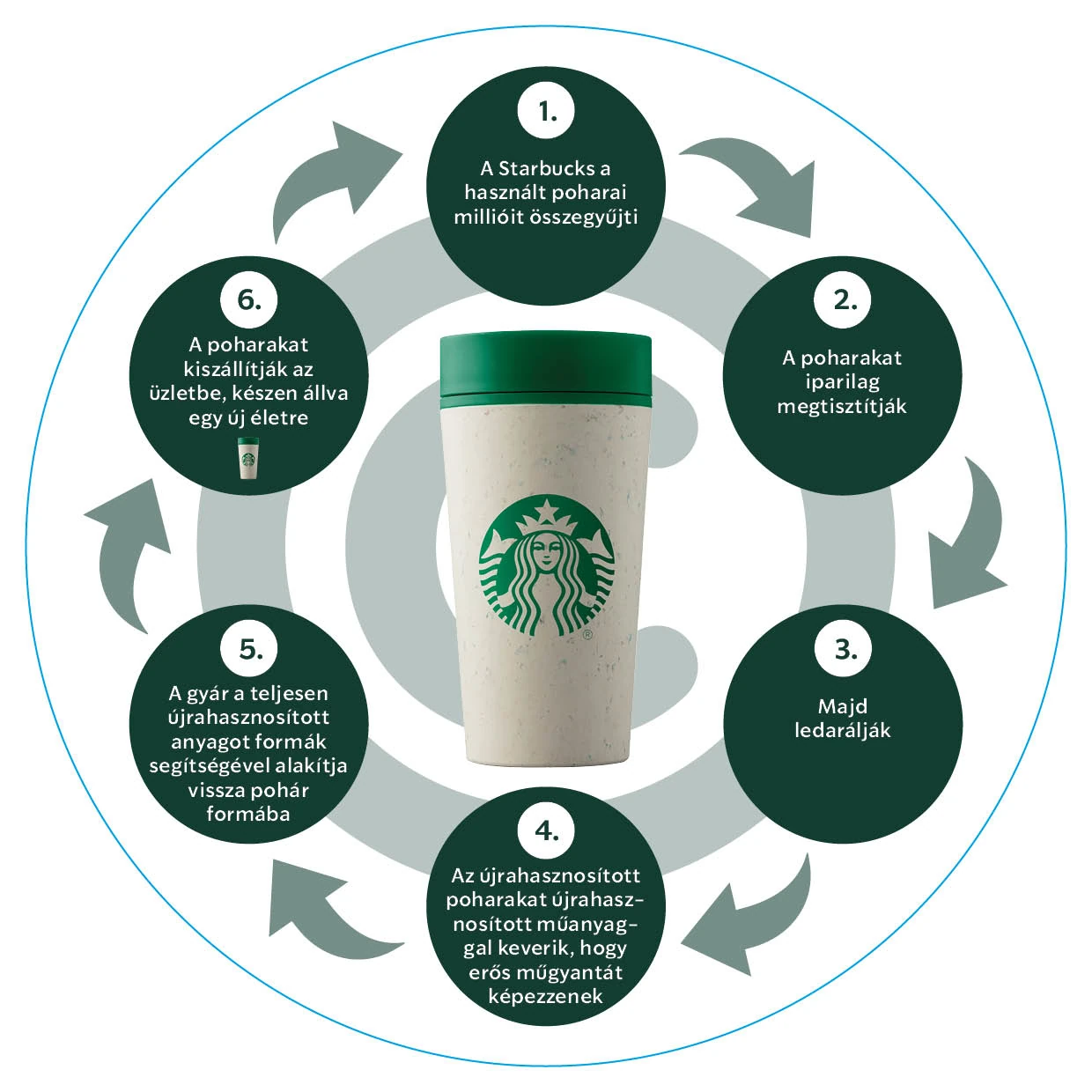 A jól bevált, többször használható poharak mellett a Starbucks ugyancsak szeptember 7-től, alternatívaként bevezeti a Circular Cup bögrét, amely újrahasznosított papírpoharakból készül. Az idén hároméves Starbucks Rewards program még több környezettudatos lépést tesz lehetővé, valamint további kedvezményeket biztosít a vendégek számára. A programba az ősz első hónapjában regisztráló új tagokat ajándék vászontáskával lepi meg a vállalat, valamint azok a vásárlók, akik a Starbucks Rewards kártyájukkal egyenlítik ki a számlát, ajándékba kapják az italkülönlegességet rejtő többször felhasználható bögrét.