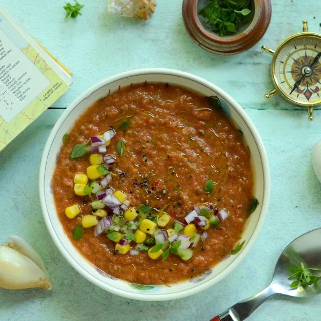 Kezdjük egy szupergyors, de igazán tartalmas és egészséges levessel, a gazpacho-val. Ezt a levest még főzni sem kell, így a home office alatt, a 30 perces ebédidőben is gond nélkül el tudjátok készíteni. Lássuk, mi kell hozzá: 1 doboz Bonduelle Inspirációk csemegekukorica, 1 kg érett paradicsom, 1 piros kaliforniai paprika, 1 kígyóuborka, 1 kis vöröshagyma, 2 gerezd fokhagyma, 2 szelet fehérkenyér, fél lilahagyma és fűszerek. A felkockázott zöldségeket és a darabokra tépkedett kenyeret fűszerezzétek, majd turmixgépben vagy egy botmixer segítségével pürésítsétek, ezután pedig ellenőrizzétek az ízeket, és ha kell, igazítsatok rajta! Tálaláskor tegyetek a leves tetejére 1-2 kanál kukoricát, egy kis apróra vágott lilahagymát és uborkát! Még negyedóra sem telt el és már kész is vagytok az első fogással. Menjünk gyorsan tovább, és nézzünk két tippet a másodikra!