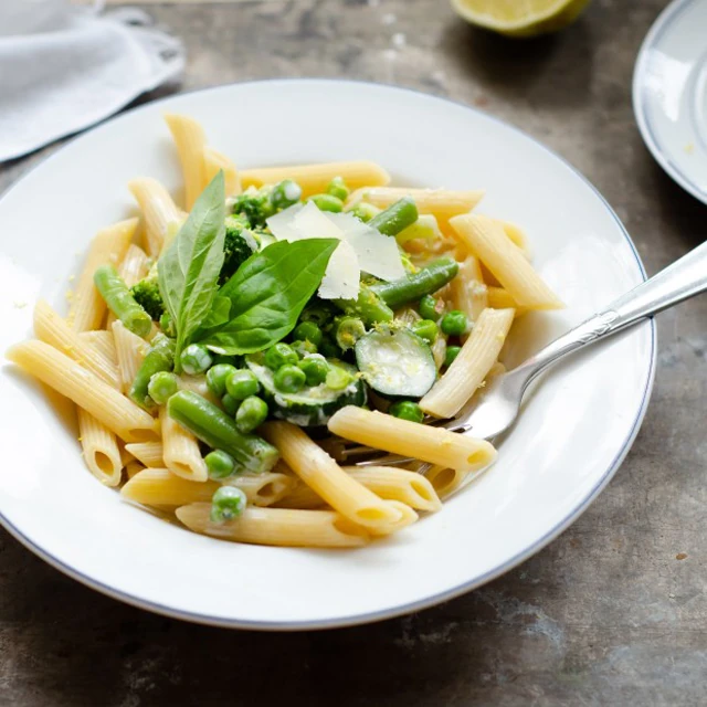 Citromos-tejszínes zöldséges penne