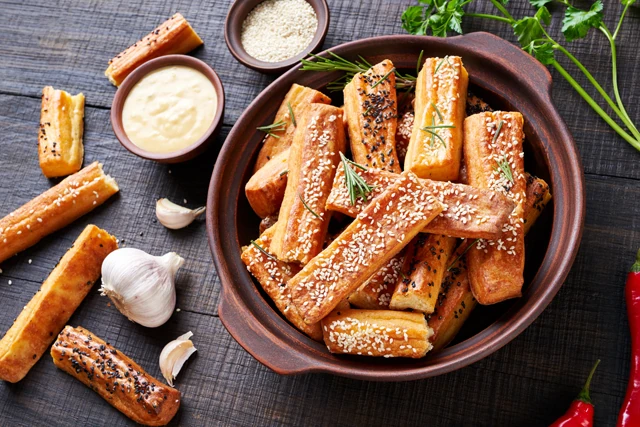Gyúrd össze a tészta alapanyagait, majd csomagold fóliába és tedd félórára a hűtőbe. Ha letelt az idő, nyújtsd ki lisztezett deszkán kb. fél centi vékonyra. Kend a meg a tetejét a tojással, szórd meg tetszés szerint sajttal, magvakkal, majd vágj vékony rudakat. Ezután tedd 175 fokra előmelegített sütőbe és süsd 20-25 perc alatt készre.