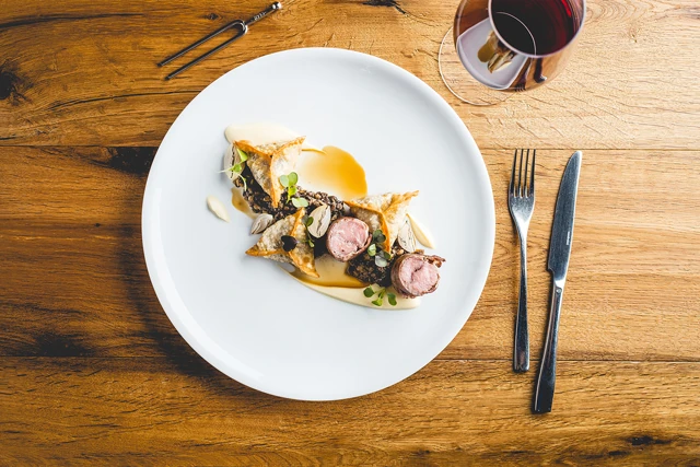 A csúcstechnológia és napjaink ízei találkoznak a hotel Liszt éttermében is, ahol többek között megkóstolhatod az őshonos sebes pisztrángot édeskömény-salátával, zöld almával és napraforgóval, a vaddisznóragut savanyított szilvával és dödöllével. Az ősz egyik fontos fogása is helyet kapott: a hagyományos Márton-napi libát kenyértésztával lezárt öntöttvas edényben szolgálják fel sült répákkal és bébicsiperkével gazdagítva. Az Osztrák-Magyar Monarchia területének egyik jellemző téli fogása, a disznótoros; a gazdag, húsos ételt azonban most vegán változatban készítik el. Imádni fogod a rizses gombahurkát, feketebabos céklahurkát illetve a csicseriborsó kolbászt. A desszertjeik pedig egytől-egyig elképesztőek.