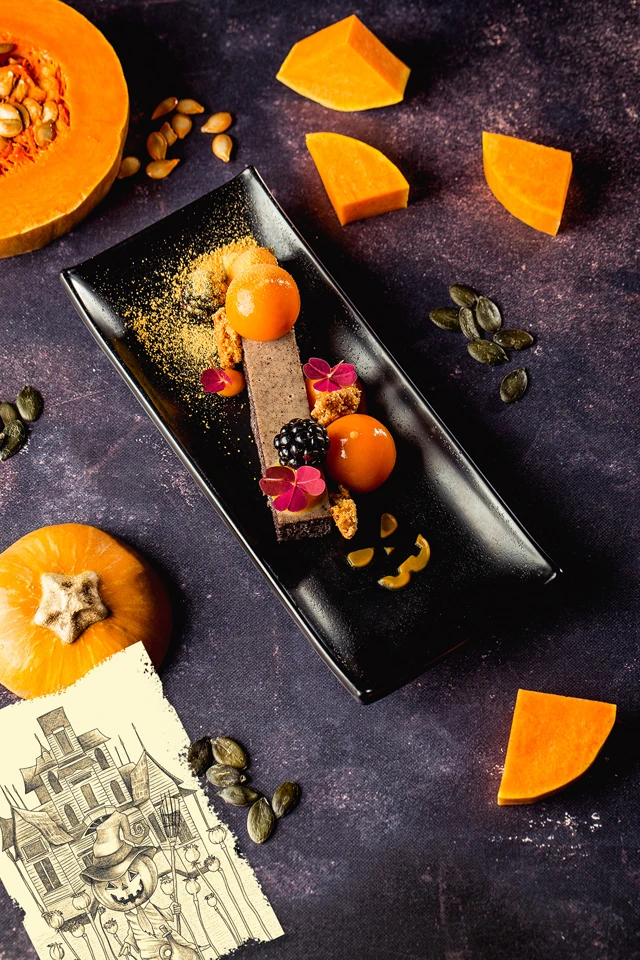 Karádi Zsuzsanna pastry séf Jack'O névre keresztelt őszies kreációjában a sütőtök és a mák párosa a Halloween legendájáról mesél, míg a bergamotos olívaolajjal és Earl Grey-es csoki ganache-sal kikerekített piskótát Pallasz Athéné, a bölcsesség istennőjének ajándékaként találják fel.