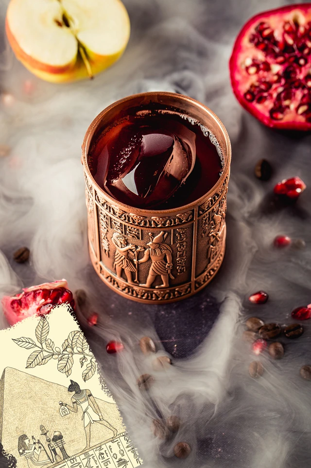Az új itallapon helyet kapott például az életét a radioaktív anyagok tanulmányozásának szenteltő lengyel-francia vegyész és fizikus, Marie Curie itala is, amit prémium magyar ginnel, a Terminussal és mediterrán tonikkal kevert italt Marie Curie "vitrinjéből származó" konyakos pohárban szolgálnak fel. Az ősi Egyiptomba csábít a gránátalmás dohánykávé sziruppal és almaborral kevert tequila-koktél, az egyiptomi macskaistennő, Básztet elixírje, vagy a legfényesebb skandináv istenséget, Heimdallt idézi meg az a vendég, aki úgy dönt, kürtjéből issza meg a házi aquavittel, borókasziruppal és bogyósgyümölcsökkel készült italt.