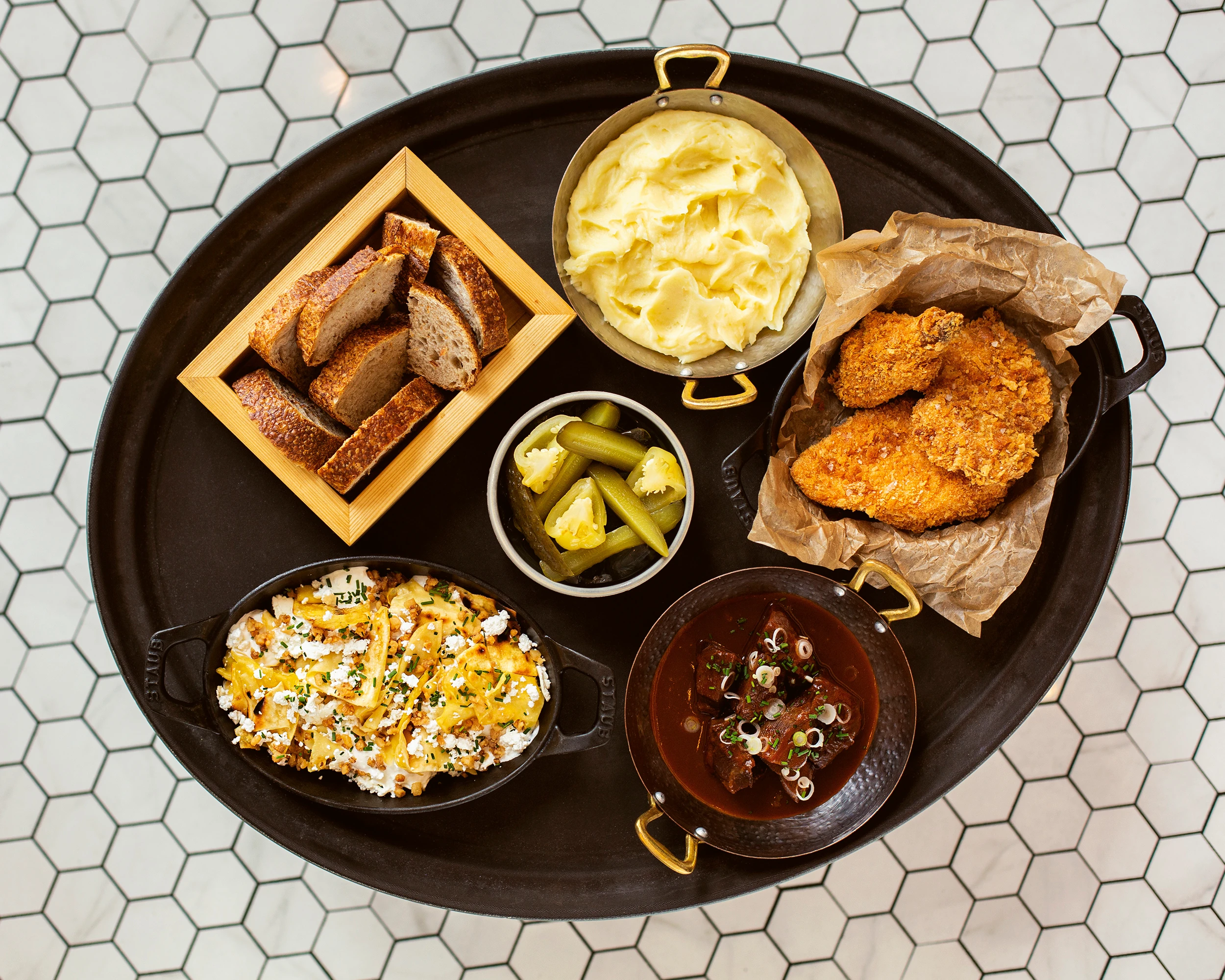 Az étlap fogásai szabadon variálhatóak, így a főételeket magunkban, melléjük választható köretekkel kínálja az új csapat. Választhatunk sült fokhagymás burgonyapürét, házi savanyúságot vagy ha éppen a borjúpörkölt mellé mást nem kívánunk, házban frissen sült kenyeret is. A Séf terve, hogy az étlap nagyjából állandó tételekkel játszi majd, de mellette hamarosan újraindul a séf ajánlat is, amiben a szezonalitásnak és a keresletnek megfelelően alakulnak a tételek.