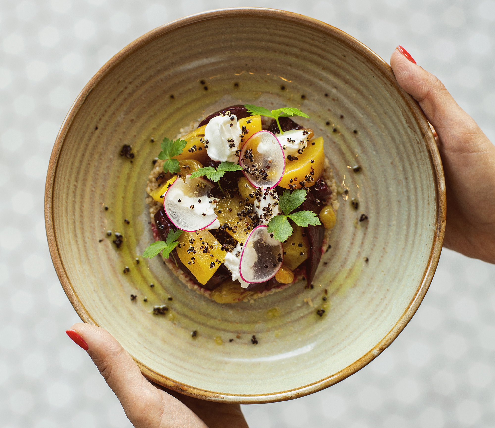 A Bistro étlapja nemzetközi fogásokból áll össze, de a Executive séf, Varga Roland- korábban Robison, Bestia - kiemelten figyelt arra is, hogy minél több vegán, vegetáriánus és allergénmentes fogás kerüljön az asztalra. Az egyik legnagyobb specialitásnak kikiáltott finomság a vegán gomba consommé, ami fermentált tofuval, házi soba tésztával, és friss zöldekkel érkezik az asztalra. MIndeközben közönség ragadozónak hívható - elvégre egy oroszlánnál, Leonál, vagyunk vendégségben - másik fele a rántott csirkecombért van oda, ami pontosan olyan ropogós, ahogyan azt anno a nagymama sparheltje mellett a kisszéken megszokhattunk, amikor a sütőből egyenesen a tányérunkra került.