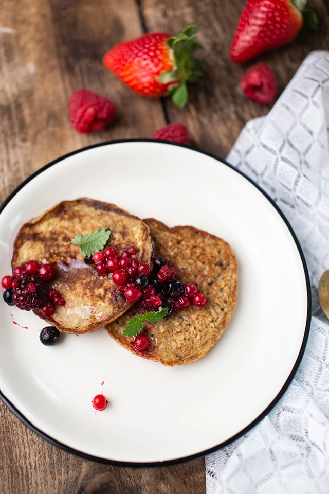 Marton Adrienn alakbarát zabpehely palacsinta-receptje erdei gyümölcs-mártással