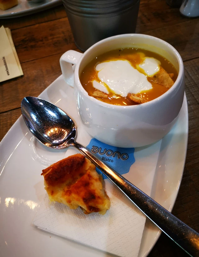 Az Alle bevásárlóközpont földszintjén nemrég nyitott Buano Bistro kínálatában kedvedre válogathatsz az olasz tészták, pizzák, a különleges roston sültek és a mennyei desszertek között. Az idei téli menüsor olyan páratlan fogásokat kínál, mint a currys sárgaborsó krémleves, a citromos pankómorzsában sült csirkemell, a ropogósra sült kacsacomb, birsalmás demi glace-val, a sós karamellás körtetorta, vagy éppen az erdei gyümölcsös mascarpone. Feltétlenül térj be hozzájuk ünnepek előtt vagy után!
