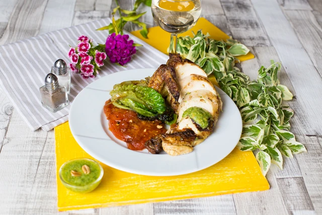 A héten bármikor elkészítheted, garantáltan óriási sikere lesz. Hogy milyen ételről van szó? Bemutatjuk a vasalt csirkét, grillezett római salátával, paradicsommal és petrezselymes pestóval.