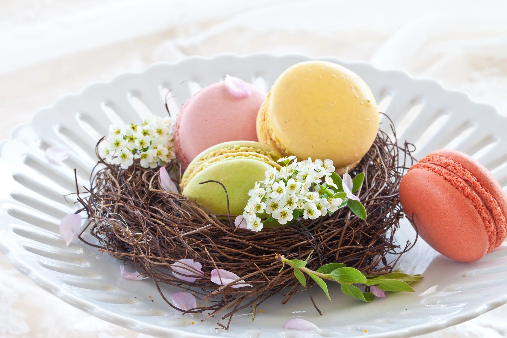 Tipp: Egy-egy macaronra húsvéti tojások motívumait fesd, így még mutatósabb lesz a kompozíció.
