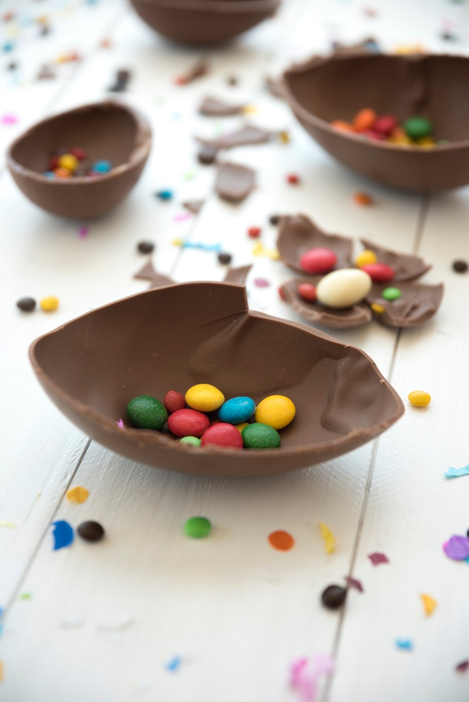 Ha se sütni-főzni, se krémeket kavargatni vagy dekorálni nincs időd, akkor pedig itt a leges-legegyszerűbb megoldás: törj ketté néhány nagyobb csokitojást, és tálkaként használva őket szórj beléjük cukorkákat, apró csokikat, bonbonokat! Tízperces művelet, és remek asztaldekoráció.