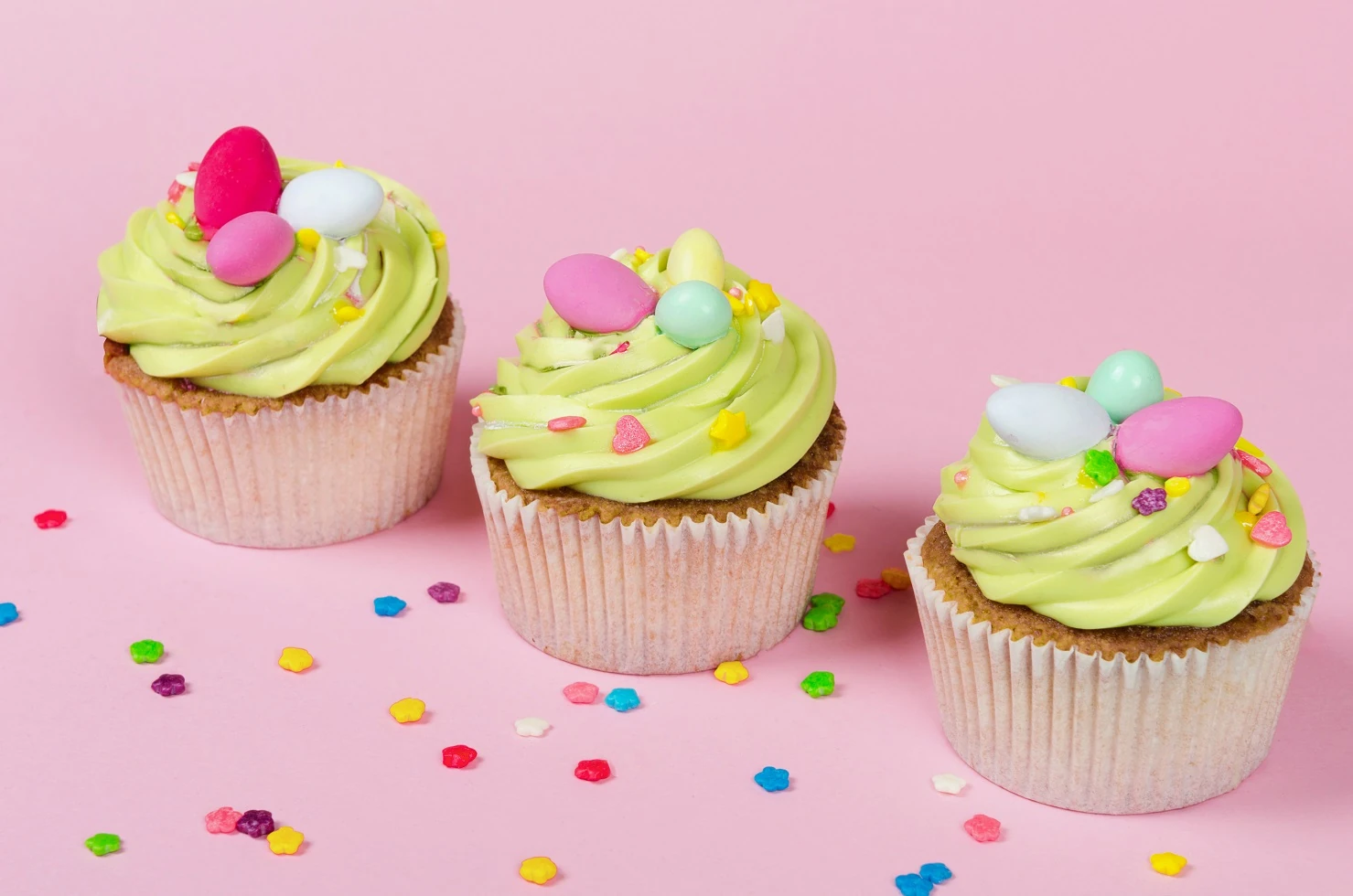 A muffin köztudottan a legegyszerűbb desszertek egyike: szó szerint csak össze kell keverni a hozzávalókat, és bedobni a sütőbe. Ha gyors, mégis stílusos húsvéti falatkákat szeretnél összehozni, nincs más dolgod, mint szerezni a boltban egy csomaggal bármilyen cukorkából, csokiból, ami húsvéti tojásokra emlékeztet. Készítsd el valamelyik alapvető muffinreceptet, és a sütik tetejére nyomj egy adag tejszínhabot, édesített joghurtot, csokikrémet, vagy bármi egyebet, amibe bele tudod „ragasztani” a tojáskákat. Sima csokitojásokkal is jól mutat, de még jobb, ha színeseket találsz!