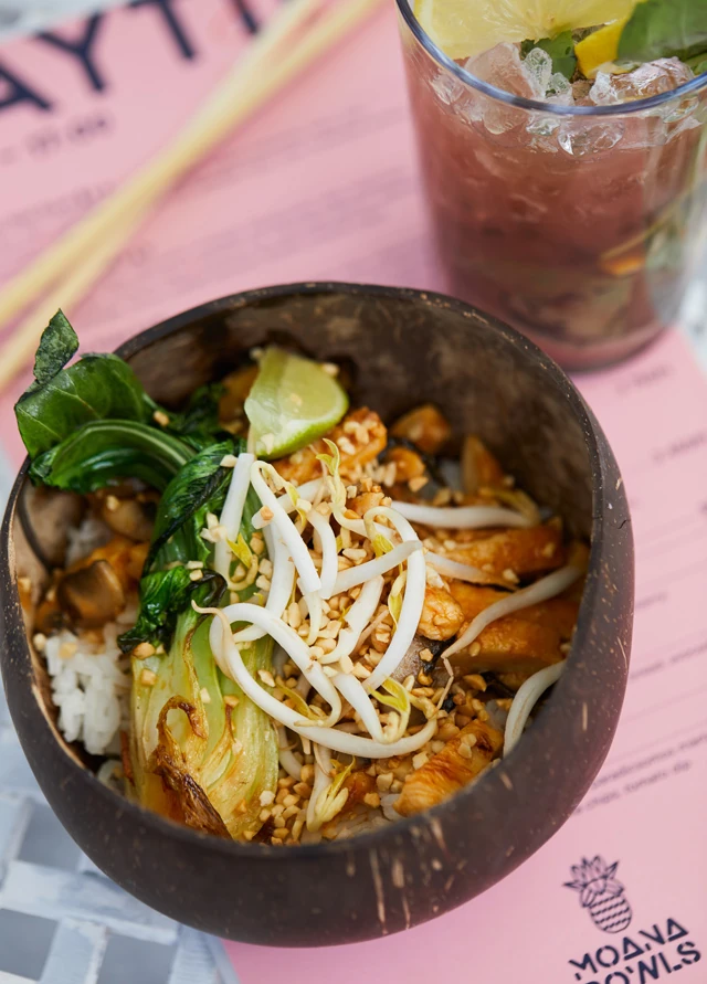 Az nyár végén, a Millenáris Parkban nyitott bárkert nagyszerű koktélokkal és a Moana Bowls által készített egészséges és színes ázsiai ízvilágú ételekkel várja vendégeit. Signature fogásuk a Moana Poke Hawaii-ról származik és kérhető lazaccal vagy vöröstonhallal, de érdemes megkóstolni reggelire a színes és finom smoothie bowlokat, vagy az egésznap kapható avo-toastokat is.