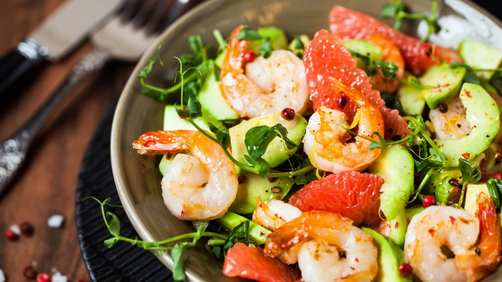 Friss saláta garnélával, grapefruittal