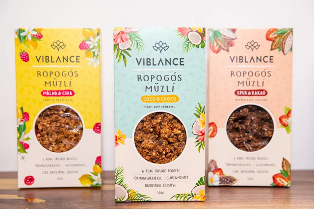 A legújabb Viblance termékcsalád a Ropogós müzli, mely egyszerre lehet tápláló reggeli, ízletes desszert vagy edzés előtti/utáni étkezés.
